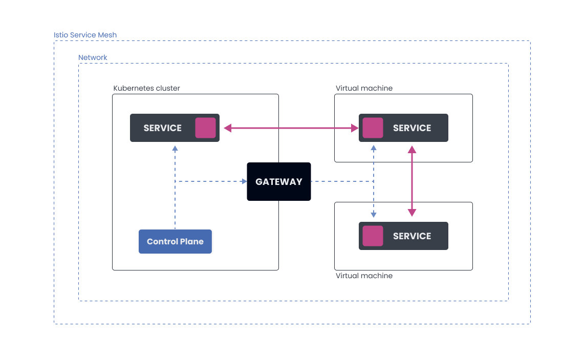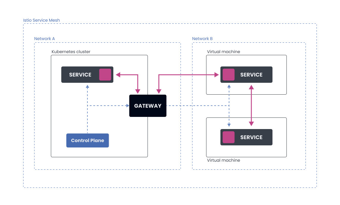 带有虚拟机的 Istio 服务网格有两种架构:单网络架构和多网络架构。