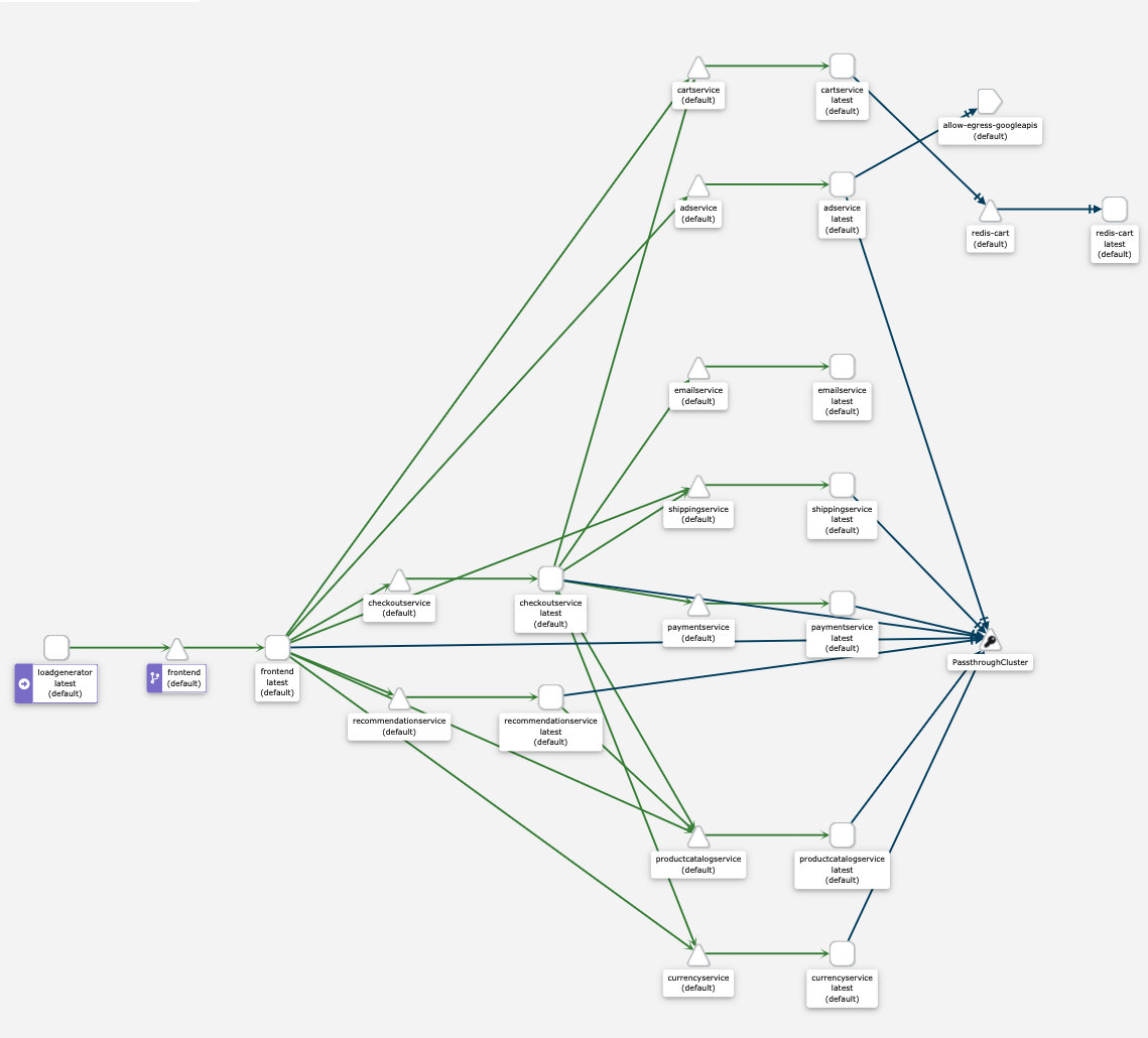 下面是 Boutique 图表在 Kiali 中的样子: