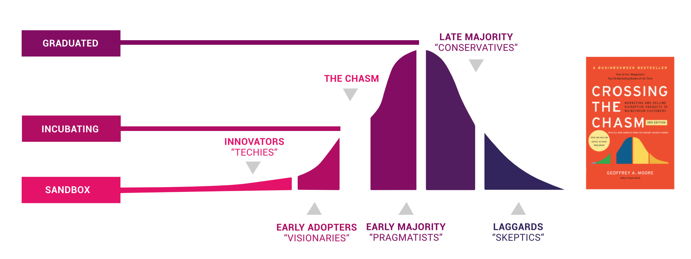 根据《Crossing the Chasm》一书中的技术采用生命周期理论,CNCF 将其托管的项目划分为三个等级: