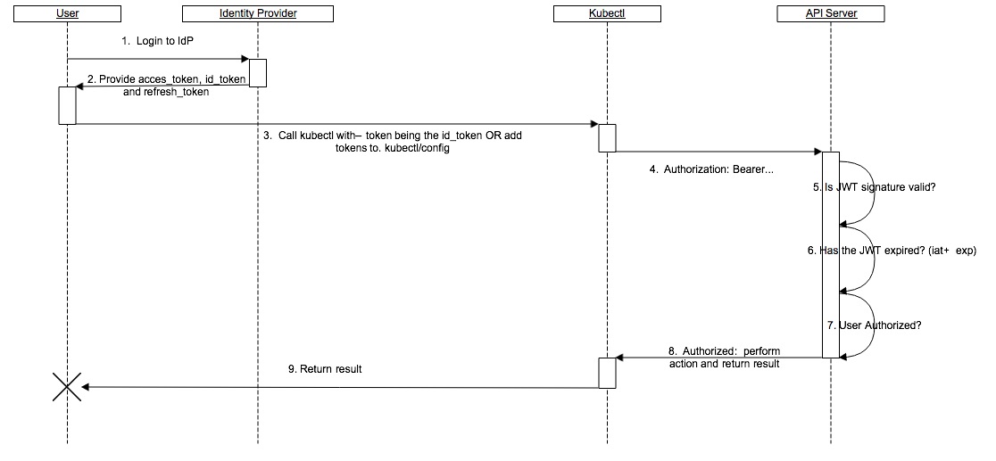 kubectl时,使用--token标志和id_token,或者直接加入到您的kubeconfig文件中 kubectl在调用 API server 时将id_token置于 HTTP header 中- API server 将通过检查配置中指定的证书来确保 JWT 签名有效