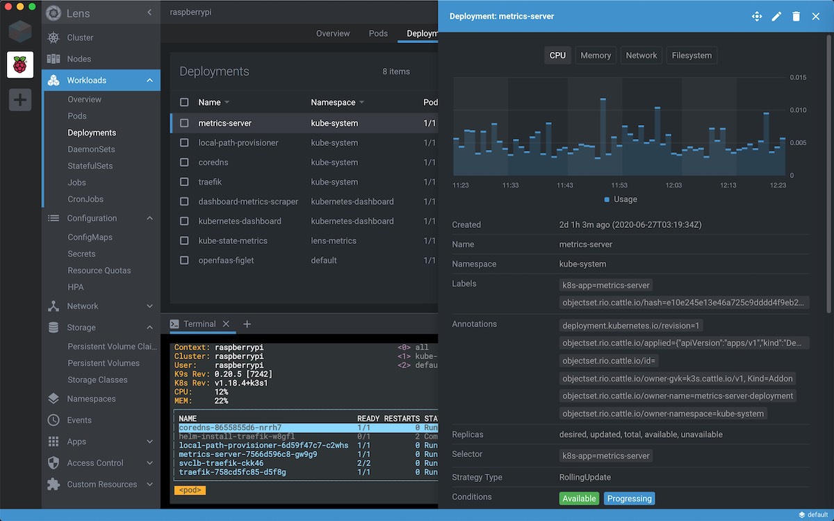 Lens 是一款开源的 Kubenretes IDE,也可以作为桌面客户端,官方网站 https://k8slens.dev,具有以下特性: