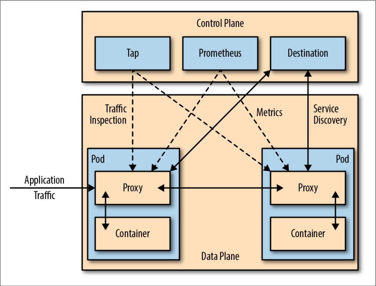 下图是曾经的 Conduit 服务网格(已合并到 Linkerd2 中了)的架构图,这是服务网格的一种典型的架构。